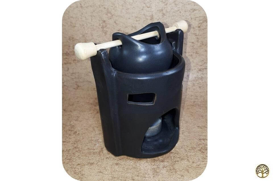 Aromalamp keramiek zwart met kannetje ~ geurhout.nl