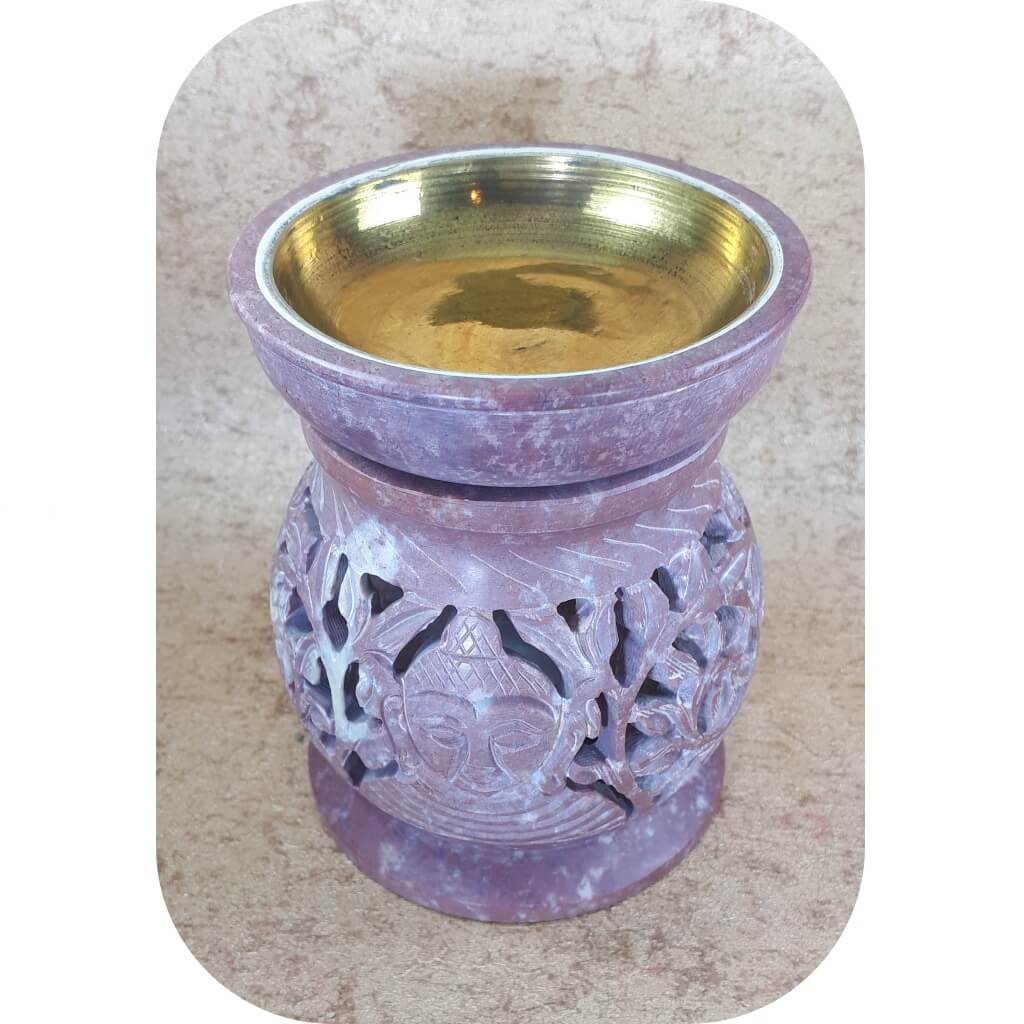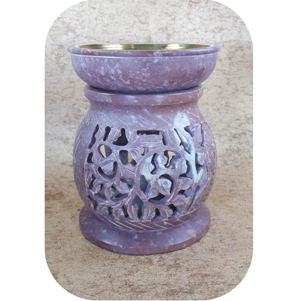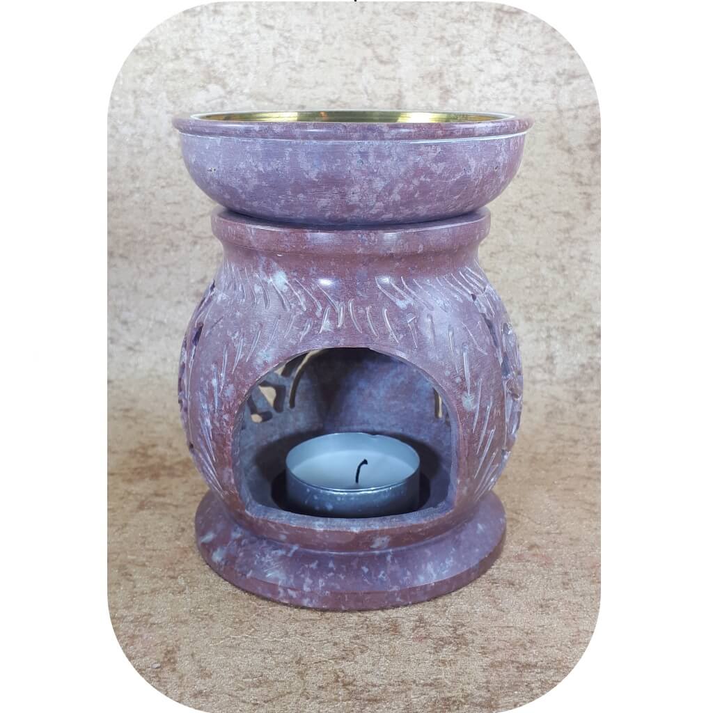 Olieverdamper van zeepsteen, zware kwaliteit. Zeepsteen is een natuurproduct dat soms donker, soms licht en soms gemarmerd uitvalt.