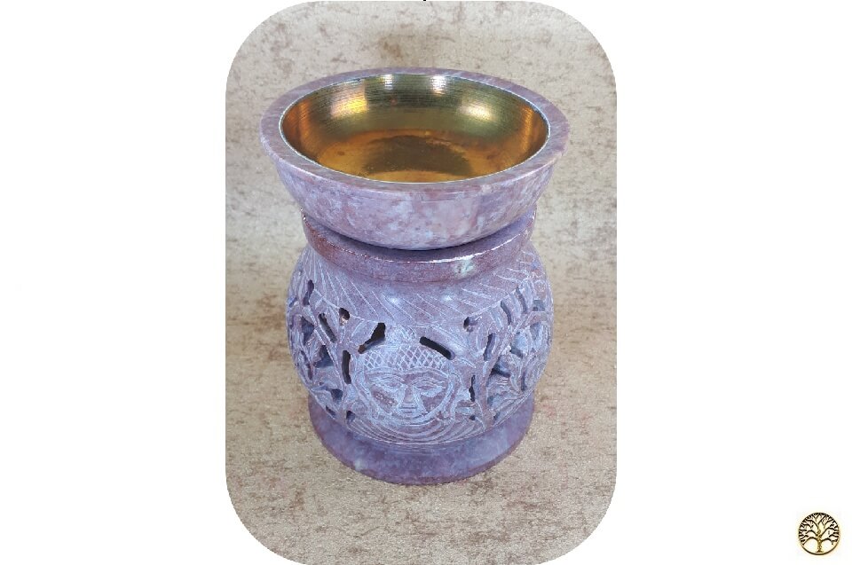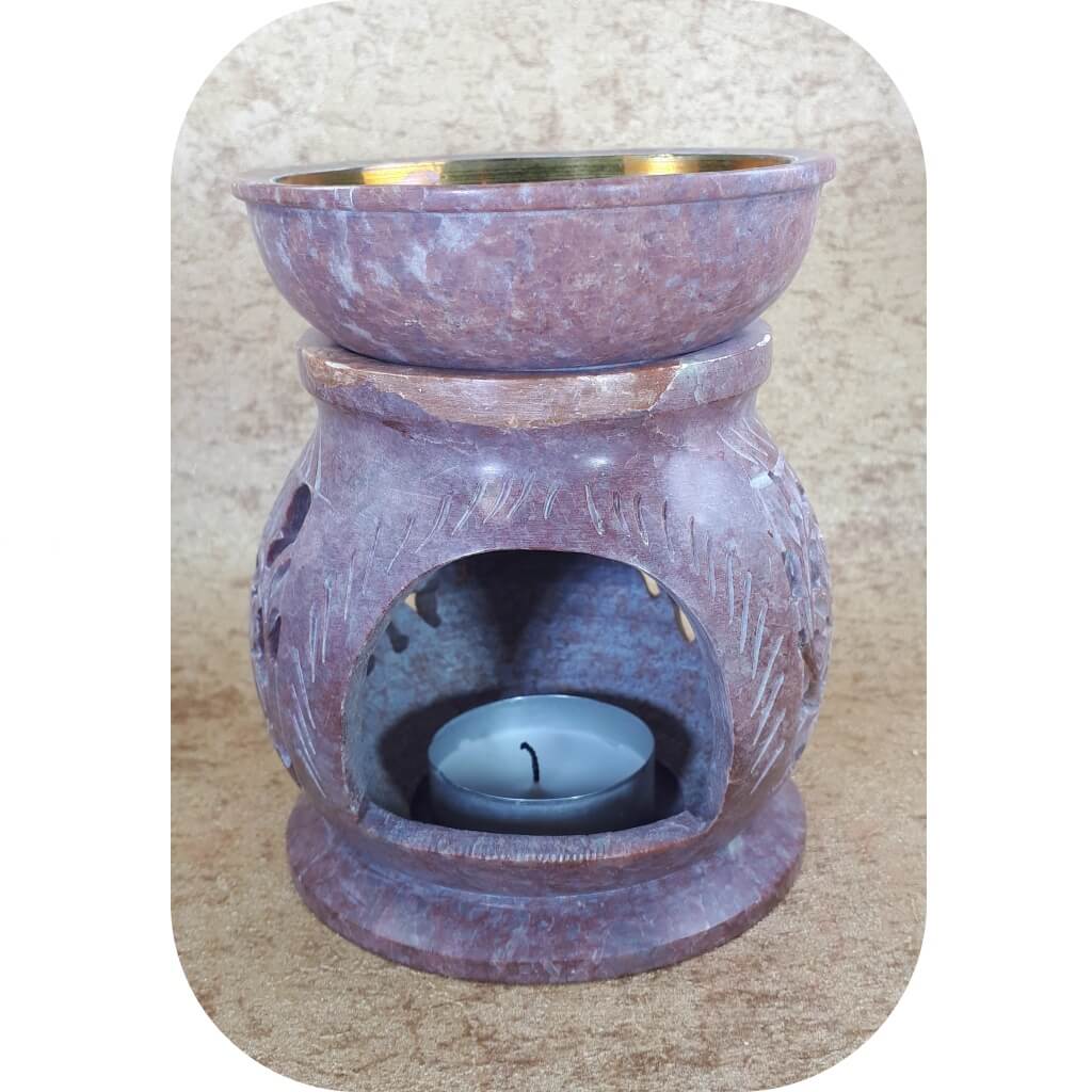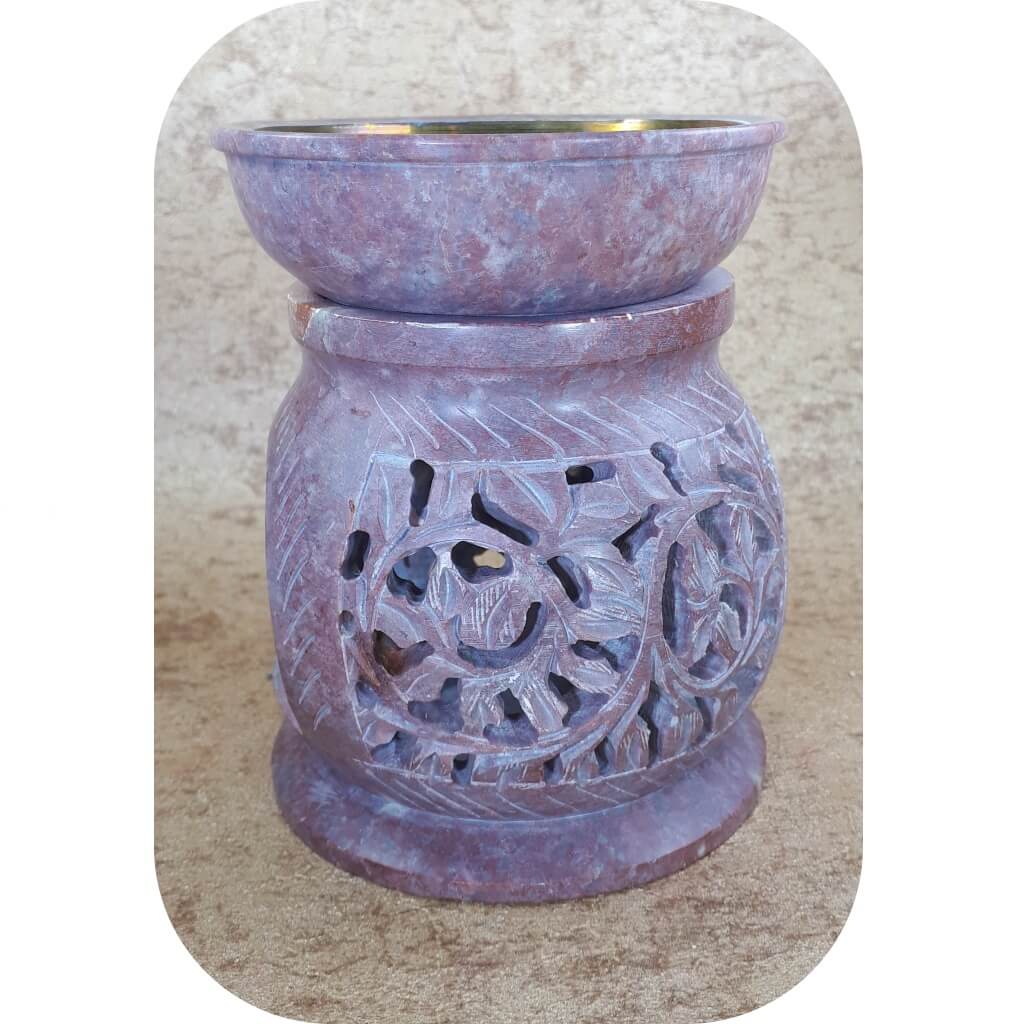 Olieverdamper van zeepsteen, zware kwaliteit. Zeepsteen is een natuurproduct dat soms donker, soms licht en soms gemarmerd uitvalt.