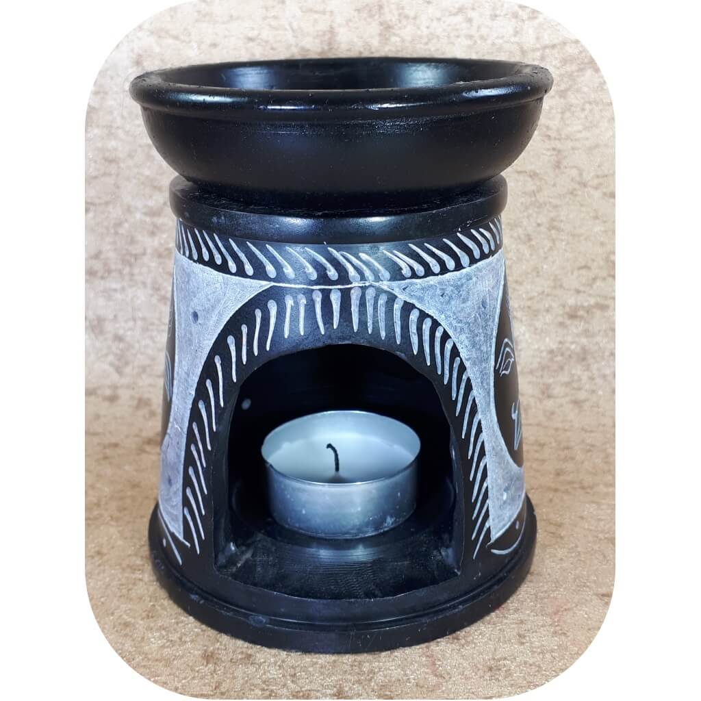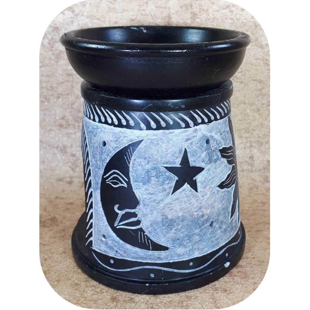 Aromalamp - Zon & Maan - zeepsteen - zwart - los bakje