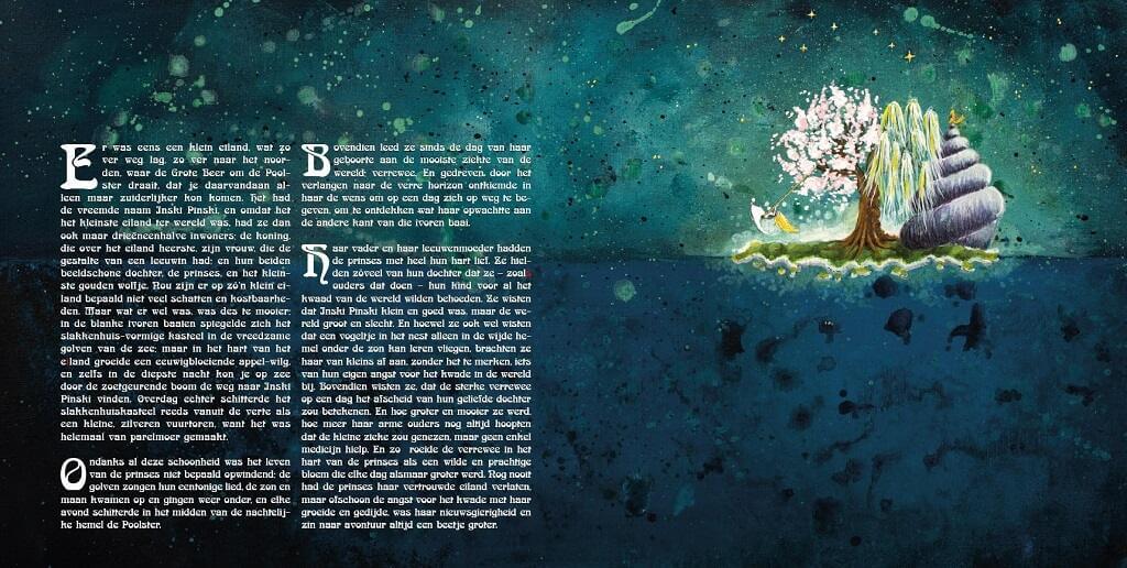 She takes the listener on a journey to a small island in the north with the strange name Inski Pinski. There lives a princess who is plagued by the most beautiful sickness in the world, horizon pain. So one day, accompanied by her little golden wolf, she sets sails to discover what lays behind the ivory shores of her little island …