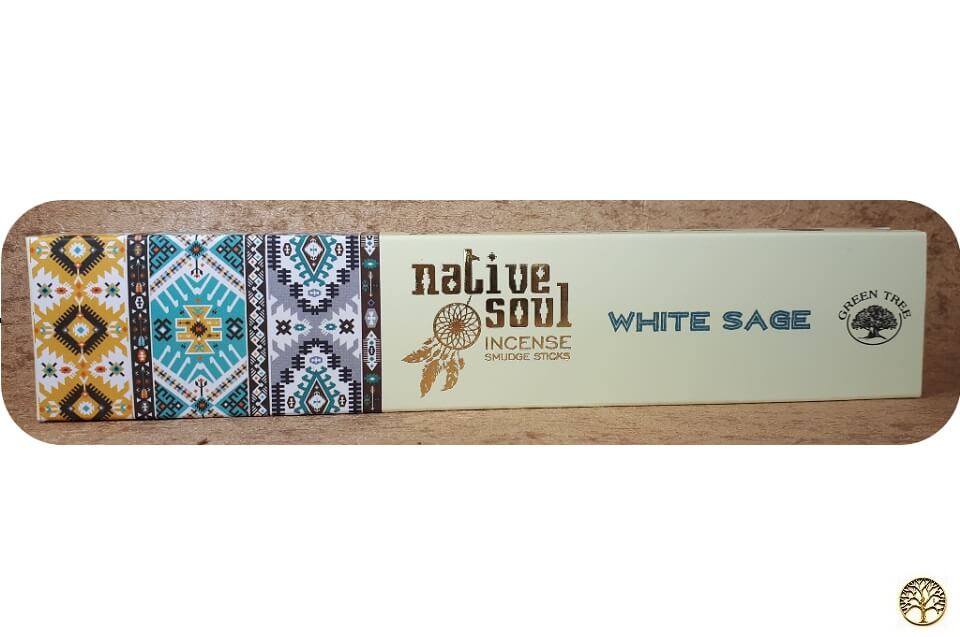 De nieuwe lijn wierook van Green Tree, Native Soul, is verpakt in een eco-vriendelijk luxe doosje met prachtige kleuren. Waar bij anderen, de wierook zelf, verpakt kan zijn in plastic, is deze wierook verpakt in een zakje van papier, dichtgebonden met een touwtje. Het doosje zelf is gevouwen als een lade, waardoor je gemakkelijk een nieuw stokje kunt pakken of een, niet geheel opgebrand stokje, kan terug plaatsen. De verrassing komt bij het openschuiven en er een smudge veertje in te vinden is.