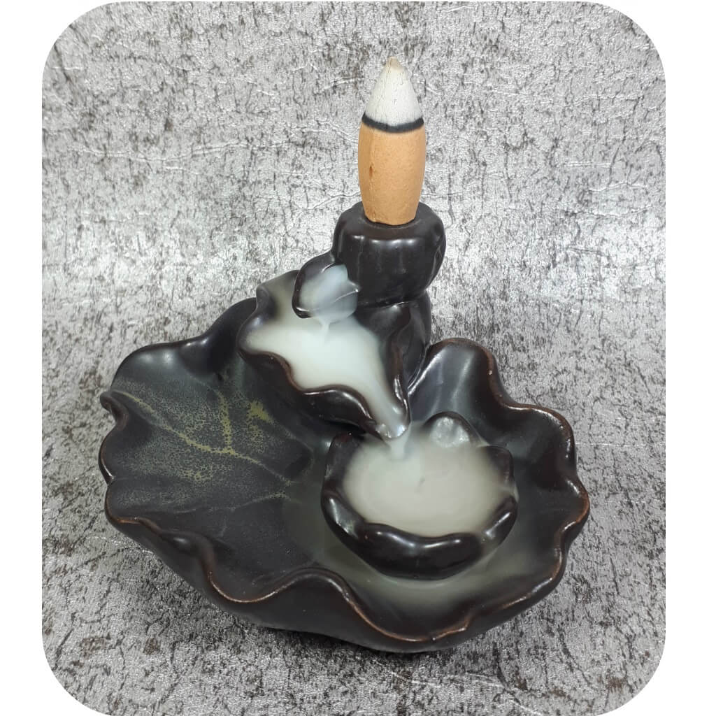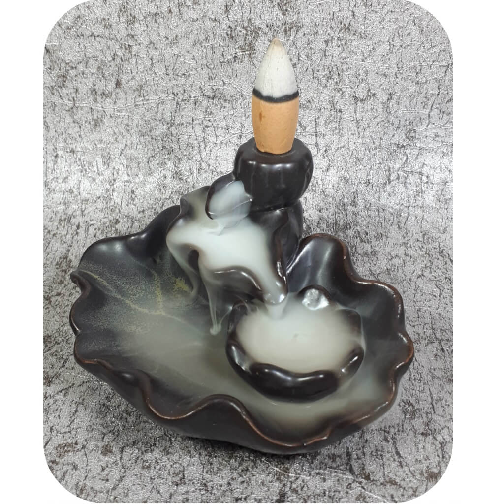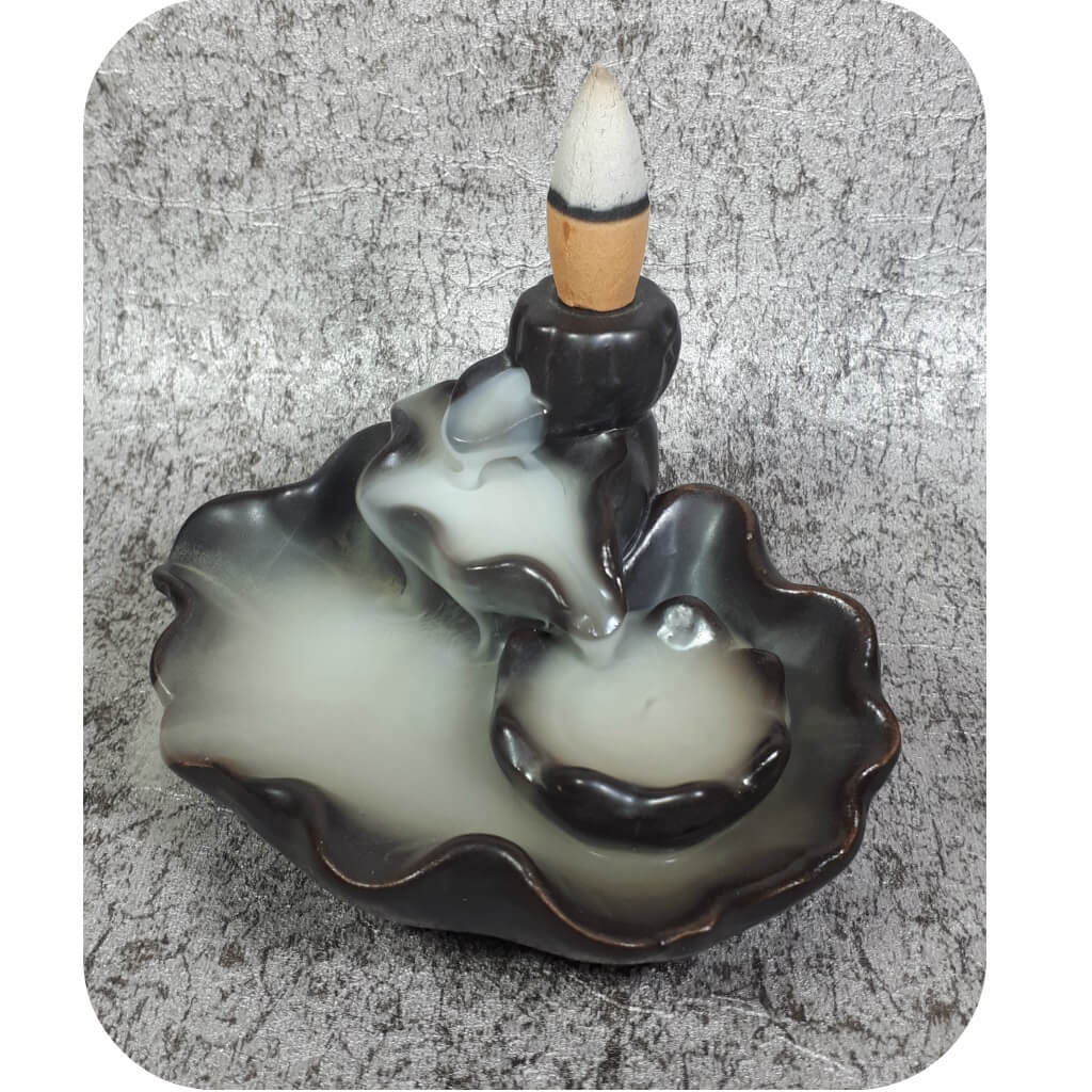 Voor het verkrijgen van dit effect heb je een speciale backflow kegel nodig. Deze kegel heeft een speciale vorm en is hol van binnen. Normaal wil rook omhoog gaan, doordat warme lucht opstijgt. Echter bij deze speciale kegels stroomt de rook naar beneden. De wierook waterval houder heeft een plek waar de kegel geplaatst wordt. Wanneer je de backflow kegel op de waterval wierook houder plaatst duurt het even voor het effect van de rook waterval ontstaat. Als de kegel goed brandt is het effect nog sterker. De waterval wierook houder dient wel op een tochtvrije plek geplaatst te worden of een plek waar niet vaak wordt langs gelopen, anders verwaaid de rook.